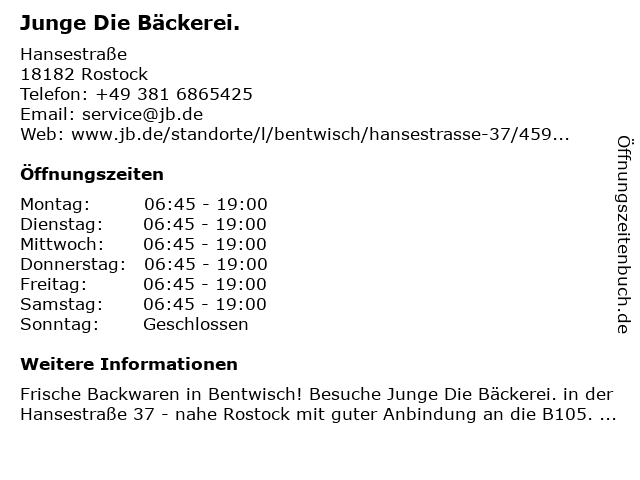 | Öffnungszeiten Junge Die Bäckerei. in Rostock anzeigen | |