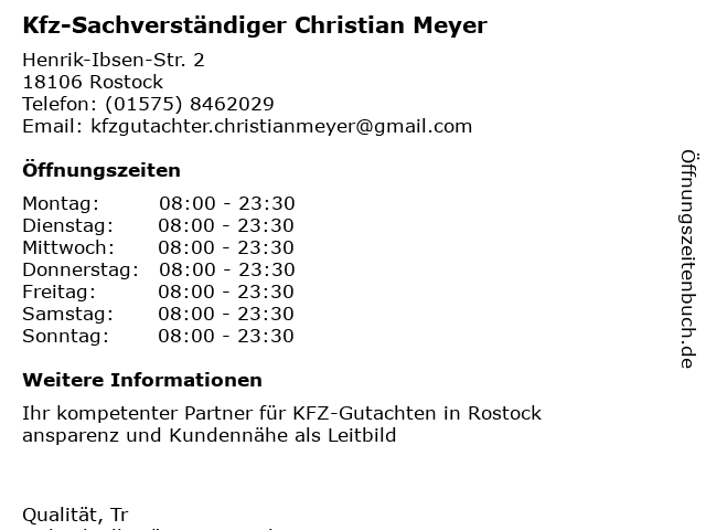1 I.C.M. Ing. -Büro für Hochbauplanung, Baustatik, Brandschutzplanung - Certificierter Sachverständiger für Bauschadenbewertung - Dipl.-Ing. Sven Pomrehn (Entfernung: 0,67 km) Knud-Rasmussen-Str. 11, 18106 Rostock 5 Guntram Gehler Sachverständiger für Garten- und Landschaftsbau (Entfernung: 5,14 km) Carl-von-Ossietzky-Str. 15, 18147 Rostock 6 HANSA-Partner Rommel & Meyer Steuerberatungsgesellschaft (Entfernung: 5,56 km) Lange Str. 1 A, 18055 Rostock |