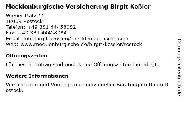 | Mecklenburgische Versicherung Birgit Keßler anrufen | |