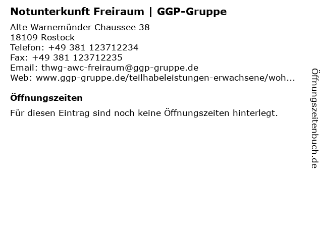 | Notunterkunft Freiraum | GGP-Gruppe anrufen | |