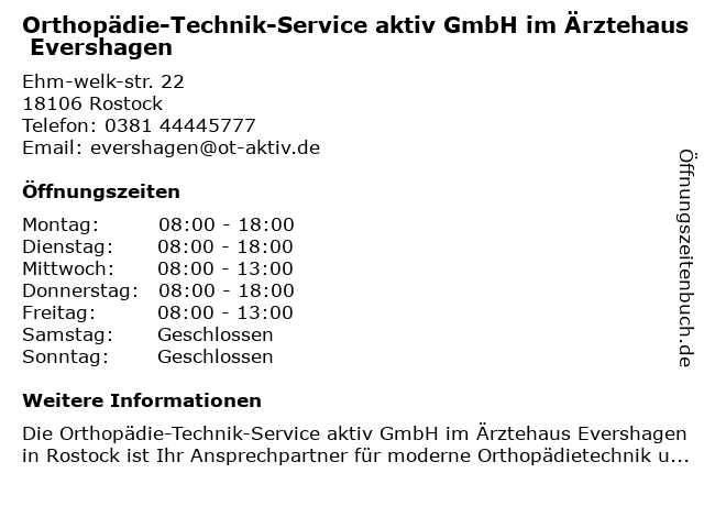 Branchen & Suchbegriffe zu Orthopädie-Technik-Service aktiv GmbH im Ärztehaus Evershagen:aktiv, evershagen, orthopädie, service, technik, ärztehaus |