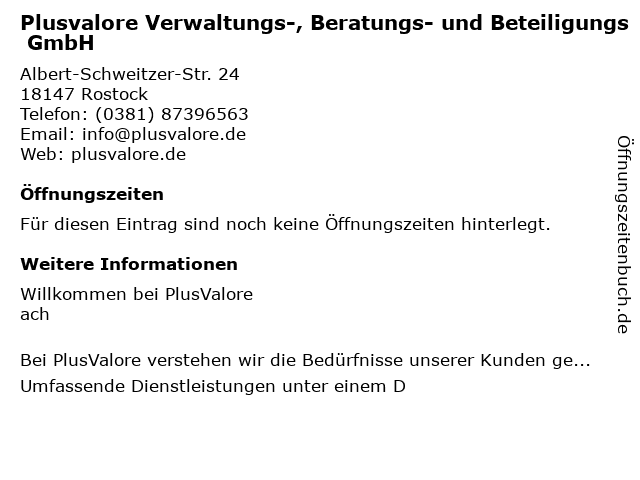Plusvalore Verwaltungs-, Beratungs- und Beteiligungs GmbH anrufen | |