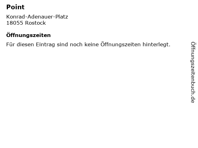 | Öffnungszeiten Point in Rostock anzeigen | |