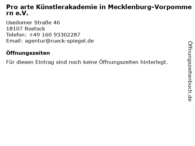| Pro arte Künstlerakademie in Mecklenburg-Vorpommern e.V. anrufen | |
