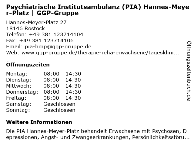 Branchen & Suchbegriffe zu Psychiatrische Institutsambulanz (PIA) Hannes-Meyer-Platz | GGP-Gruppe:akute psychische krisen, ambulante psychiatrische behandlung, angst- und zwangserkrankungen, behandlung von psychosen, depression & affektive störungen, ggp, gruppe, hannes, institutsambulanz, meyer, persönlichkeitsstörungen, pia, platz, psychiatrische, psychiatrische diagnostik, psychiatrische institutsambulanz (pia), psychiatrische versorgung rostock, psychosoziale stabilisierung, psychotherapie erwachsene, tagesklinik erwachsene, tagesklinik hannes-meyer-platz, teilstationäre psychiatrie |