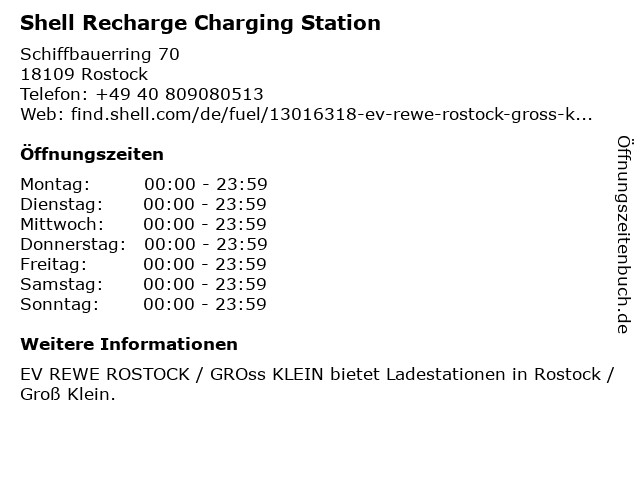 Öffnungszeiten Shell Recharge Charging Station in Rostock anzeigen