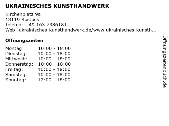 | Öffnungszeiten UKRAINISCHES KUNSTHANDWERK in Rostock anzeigen | |