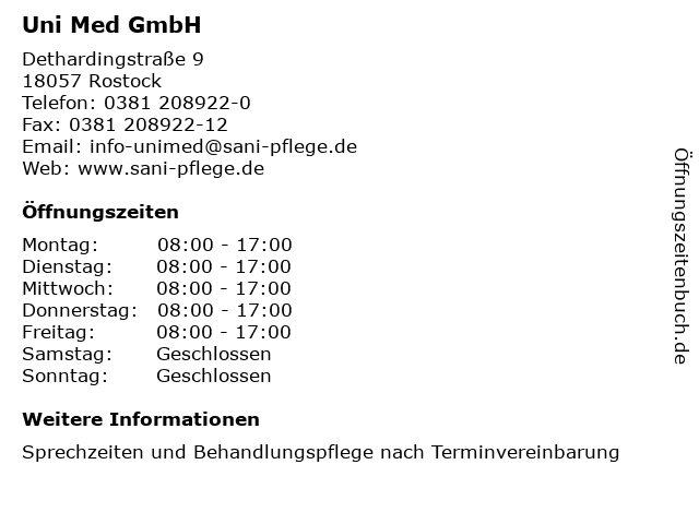 | Öffnungszeiten Uni Med GmbH in Rostock anzeigen | |