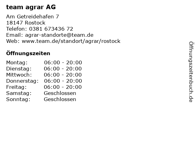 | Öffnungszeiten team agrar AG in Rostock anzeigen | |