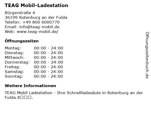 TEAG Mobil-Ladestation in Rotenburg an der Fulda: Telefonnummer, Öffnungszeiten und Adresse