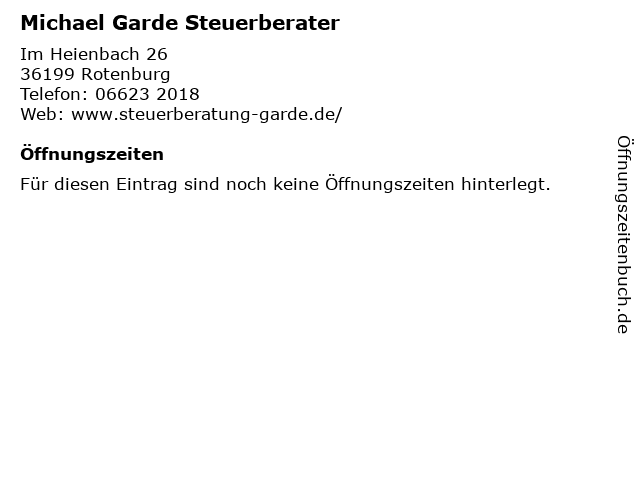 | Öffnungszeiten Michael Garde Steuerberater in Rotenburg anzeigen | |