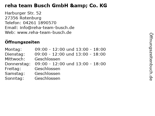 Branchen & Suchbegriffe zu reha team Busch GmbH & Co. KG:busch, reha, team |