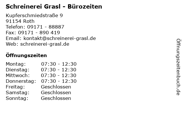 | Öffnungszeiten Schreinerei Grasl - Bürozeiten in Roth anzeigen | |