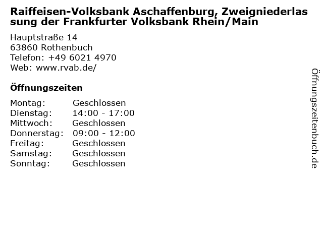 Branchen & Suchbegriffe zu Raiffeisen-Volksbank Aschaffenburg, Zweigniederlassung der Frankfurter Volksbank Rhein/Main:frankfurter, raiffeisen, rhein/main, volksbank, zweigniederlassung |