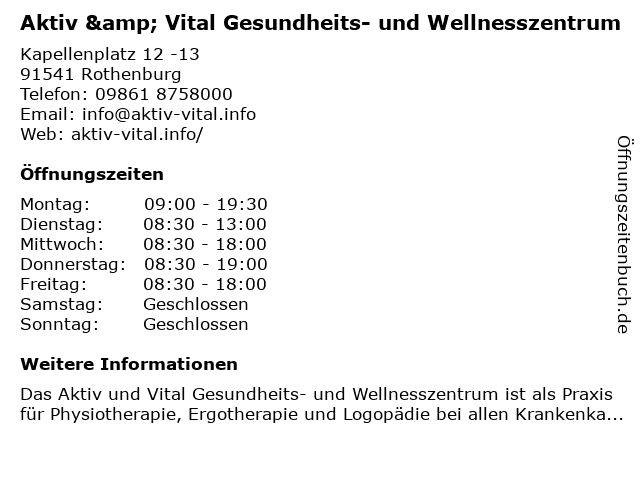 Branchen & Suchbegriffe zu Aktiv & Vital Gesundheits- und Wellnesszentrum:aktiv, gesundheits, vital, wellnesszentrum |