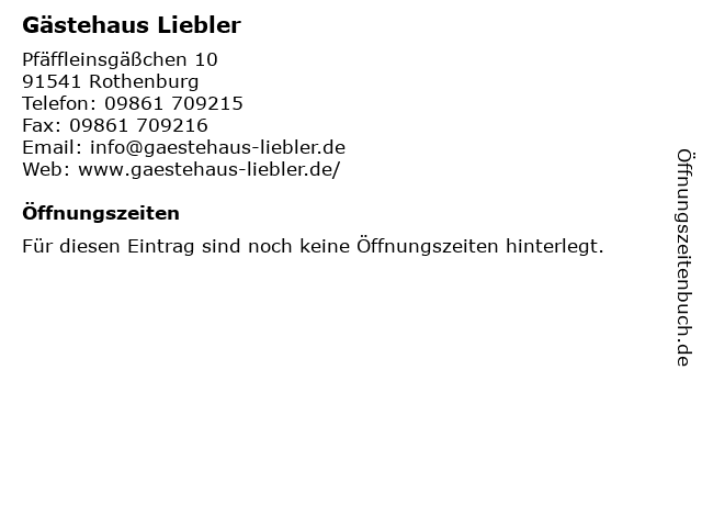 | Öffnungszeiten Gästehaus Liebler in Rothenburg anzeigen | |
