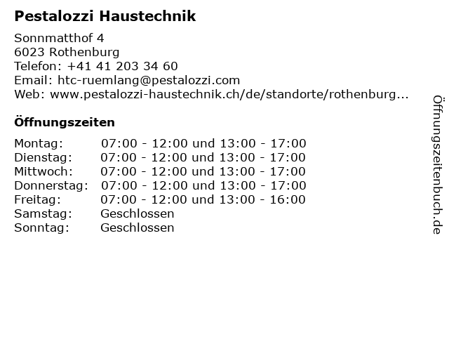 | Öffnungszeiten Pestalozzi Haustechnik in Rothenburg anzeigen | |