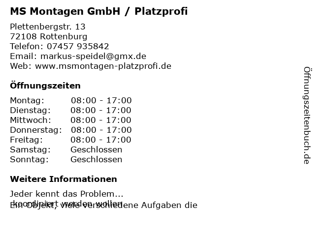 Branchen & Suchbegriffe zu MS Montagen GmbH / Platzprofi:montagen, ms, platzprofi |