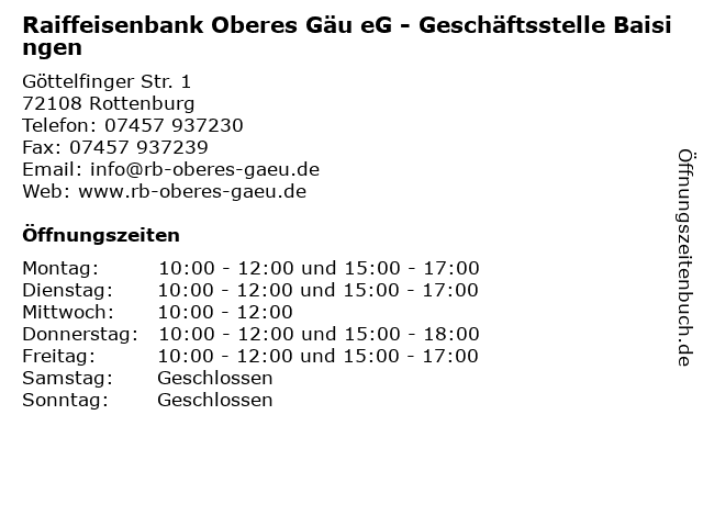 Branchen & Suchbegriffe zu Raiffeisenbank Oberes Gäu eG - Geschäftsstelle Baisingen:baisingen, bank, banken, eg, geldautomat, geschäftsstelle, gäu, kontoauszugsdrucker, oberes, raiffeisenbank |