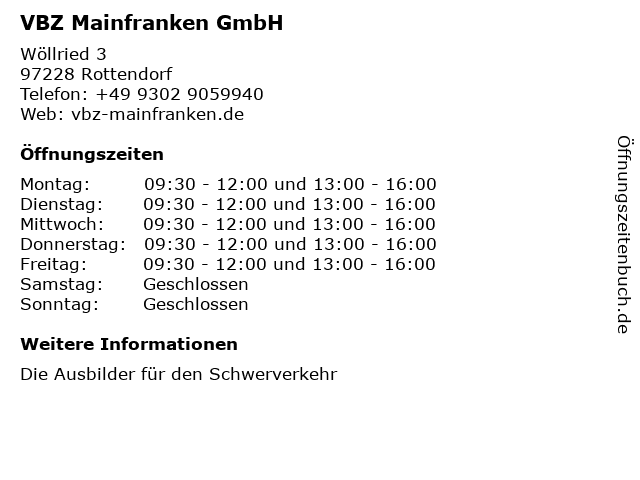 | Öffnungszeiten VBZ Mainfranken GmbH in Rottendorf anzeigen | |