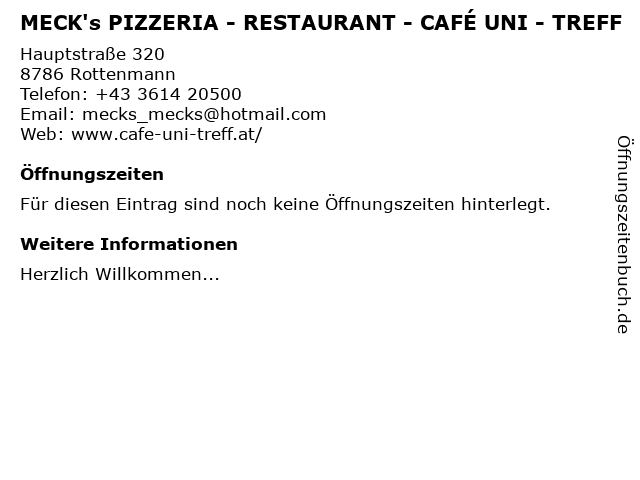 | MECK's PIZZERIA - RESTAURANT - CAFÉ UNI - TREFF anrufen | |
