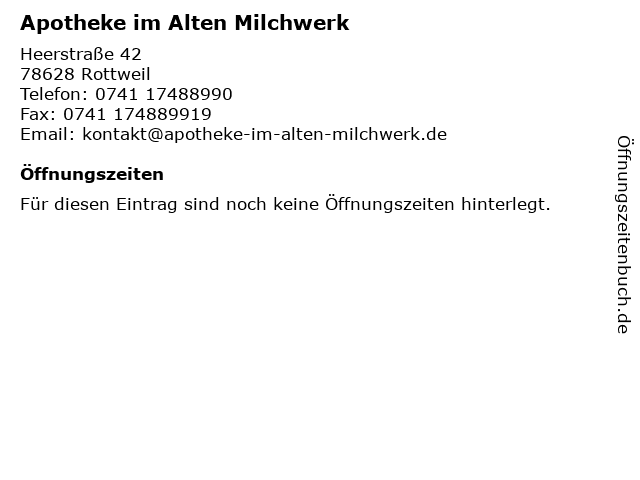 | Öffnungszeiten Apotheke im Alten Milchwerk in Rottweil anzeigen | |