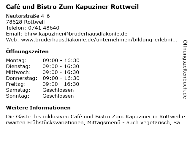 Branchen & Suchbegriffe zu Café und Bistro Zum Kapuziner Rottweil:bistro, café, kapuziner, rottweil, zum |