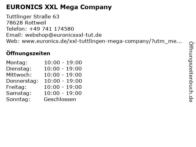 | Öffnungszeiten EURONICS XXL Mega Company in Rottweil anzeigen | |