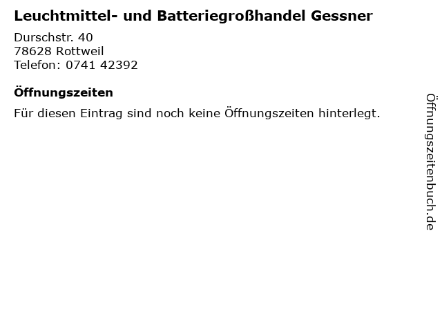 | Leuchtmittel- und Batteriegroßhandel Gessner anrufen | |