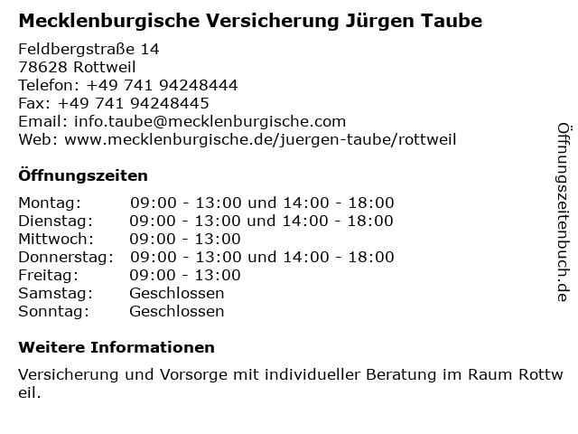 1 Mecklenburgische Versicherungsgruppe - Generalvertretung Anton Hänle (Entfernung: 14,57 km) Kronenstr. 10, 78727 Oberndorf 5 Mecklenburgische Versicherungsgruppe - Generalvertretung Jürgen Ammann (Entfernung: 31,22 km) Johannes Raster Straße 46, 72461 Albstadt 6 |
