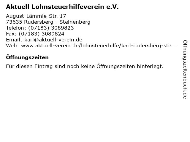 1 Aktuell Lohnsteuerhilfeverein e.V. (Entfernung: 2,32 km) Bahnhofplatz 12, 73635 Rudersberg - Schlechtbach 6 |
