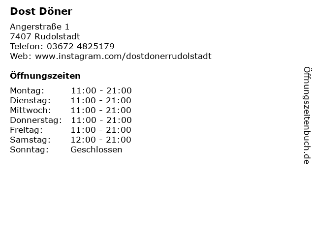 | Öffnungszeiten Dost Döner in Rudolstadt anzeigen | |