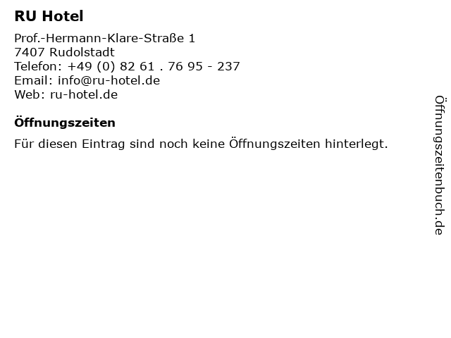 | Öffnungszeiten RU Hotel in Rudolstadt anzeigen | |
