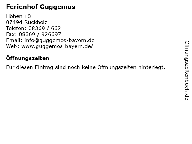 | Öffnungszeiten Ferienhof Guggemos in Rückholz anzeigen | |