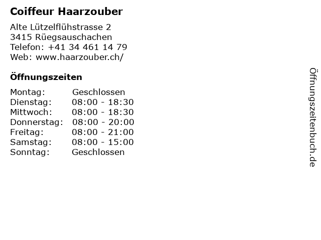 | Öffnungszeiten Coiffeur Haarzouber in Rüegsauschachen anzeigen | |