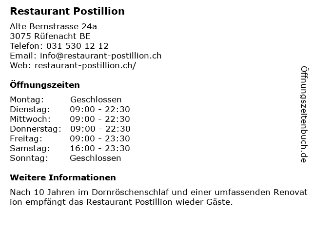 Öffnungszeiten Restaurant Postillion