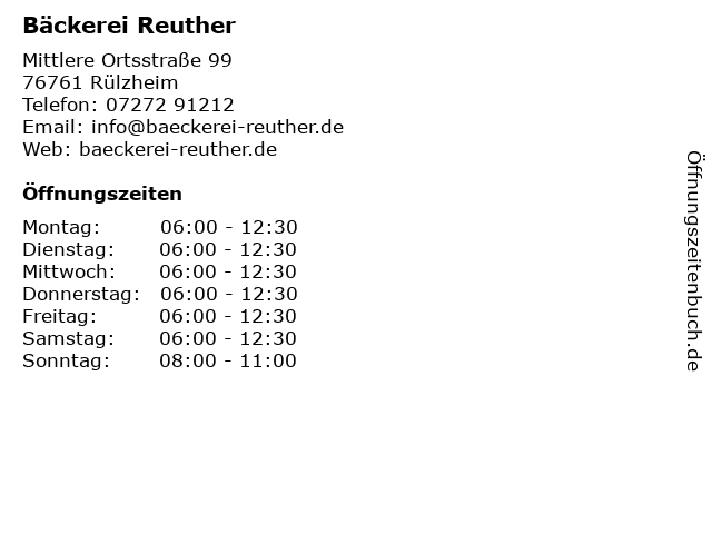 | Öffnungszeiten Bäckerei Reuther in Rülzheim anzeigen | |