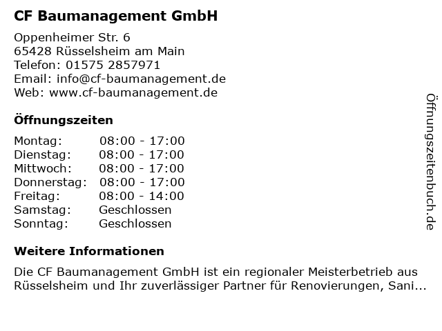 Branchen & Suchbegriffe zu CF Baumanagement GmbH:baumanagement, cf |