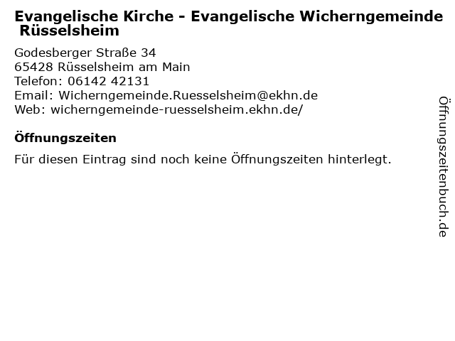 | Evangelische Kirche - Evangelische Wicherngemeinde Rüsselsheim anrufen | |