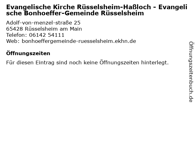 | Evangelische Kirche Rüsselsheim-Haßloch - Evangelische Bonhoeffer-Gemeinde Rüsselsheim anrufen | |