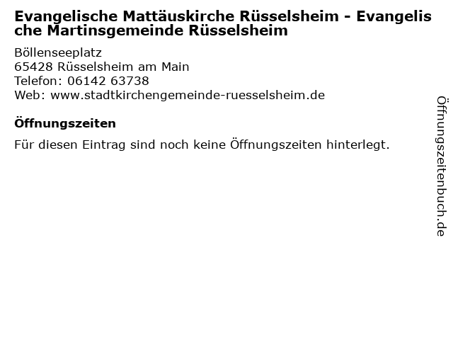 | Evangelische Mattäuskirche Rüsselsheim - Evangelische Martinsgemeinde Rüsselsheim anrufen | |