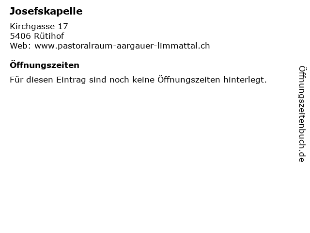 | Öffnungszeiten Josefskapelle in Rütihof anzeigen | |