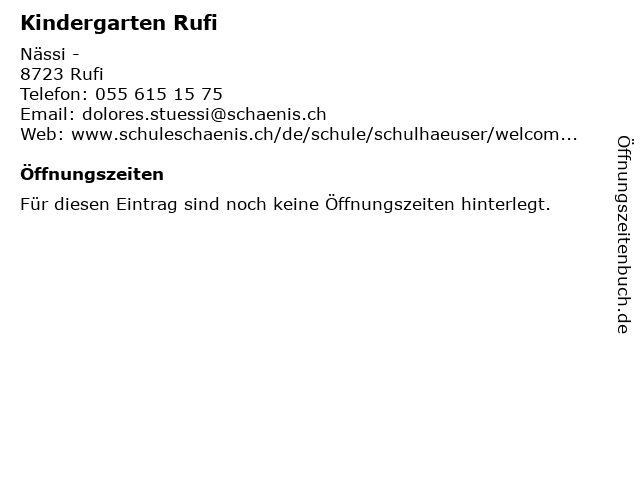 | Öffnungszeiten Kindergarten Rufi in Rufi anzeigen | |