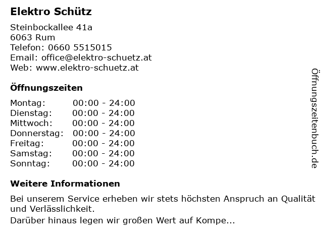 | Öffnungszeiten Elektro Schütz in Rum anzeigen | |