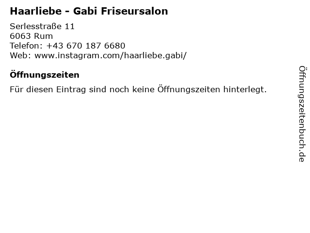 | Öffnungszeiten Haarliebe - Gabi Friseursalon in Rum anzeigen | |