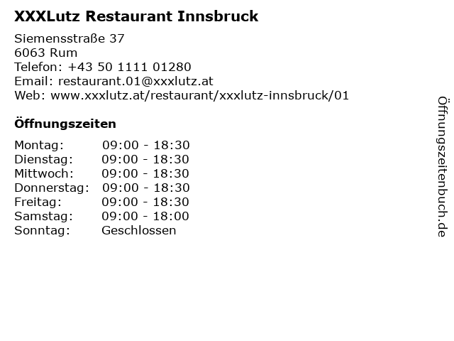 | Öffnungszeiten XXXLutz Restaurant Innsbruck in Rum anzeigen | |