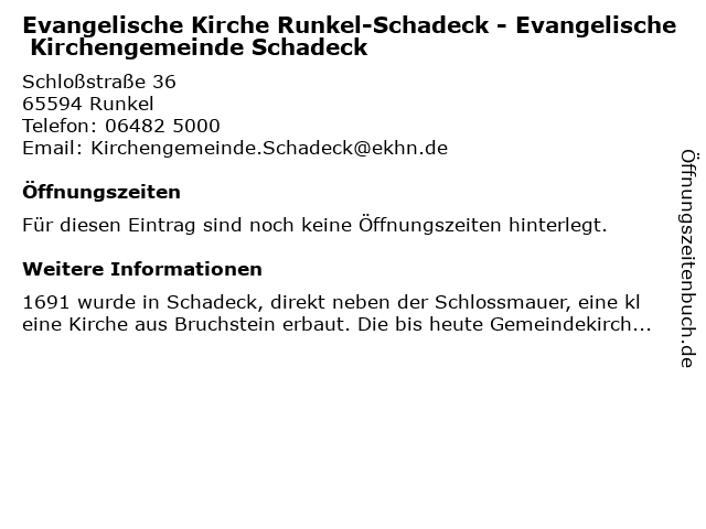 | Evangelische Kirche Runkel-Schadeck - Evangelische Kirchengemeinde Schadeck anrufen | |