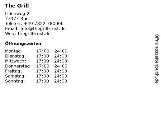 | Öffnungszeiten The Grill in Rust anzeigen | |