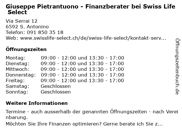 Branchen & Suchbegriffe zu Giuseppe Pietrantuono - Finanzberater bei Swiss Life Select:bei, berufshaftpflichtversicherung, berufsunfähigkeitsversicherung, finanzberater, finanzplanung, gebäude- und hausratsversicherung, giuseppe, investmentservice, lebensversicherung, life, mietrechtsschutzversicherung, pflegeversicherung, pietrantuono, select, swiss, versicherungsberater |