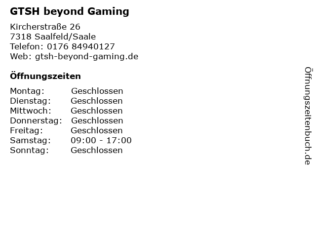 | Öffnungszeiten GTSH beyond Gaming in Saalfeld/Saale anzeigen | |